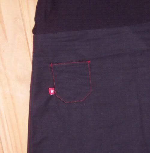 Ich habe nur eine Tasche auf der Vorderseite aufgenäht. Diese Tasche habe ich entgegen der Anleitung in doppelter Stofflage genäht und verstürzt, das geht mir leichter von der Hand.